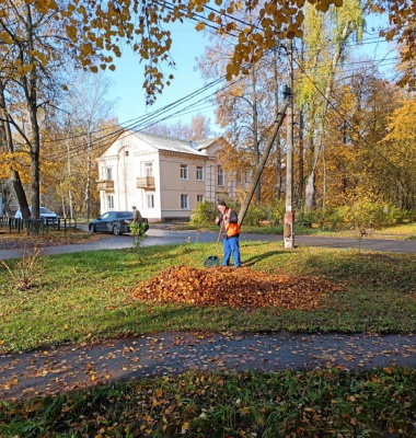 При уборке листвы дворники в первую очередь уделяют внимание входам в подъезды, тротуарам и проездам, а потом переходят на прогребание газонов и других территорий.